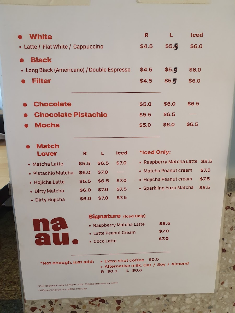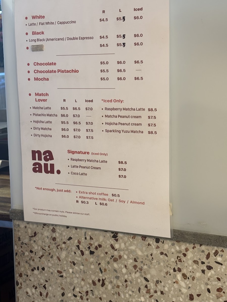 Naau Cafe Menu